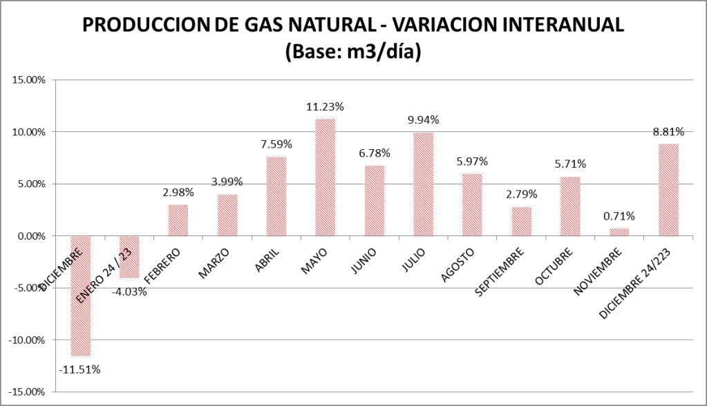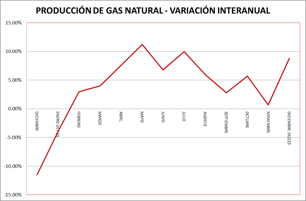 La producción de gas natural de los meses de diciembre de cada año puede verse en el gráfico a continuación: