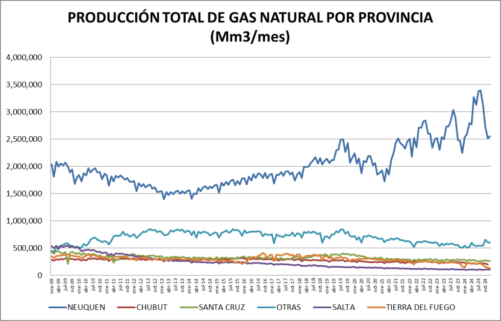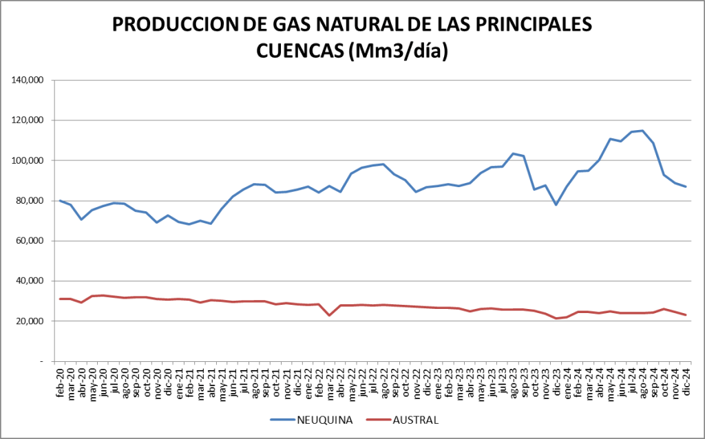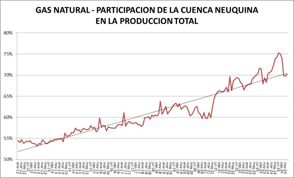 En el caso del gas natural la cuenca preponderante es la neuquina: