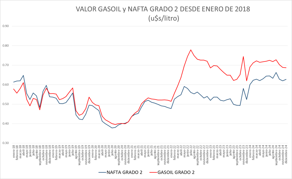 | En u$s/litro | NAFTA GRADO 2 | GASOIL GRADO 2 |