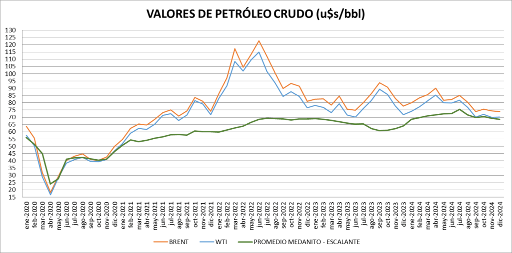 El promedio nacional de diciembre 2024 es de 68,51 dólares por barril.