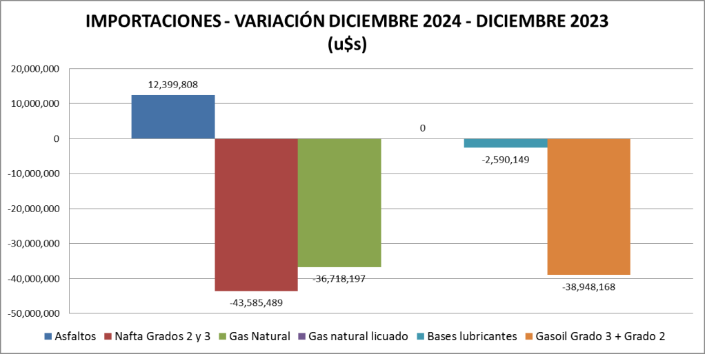 La principal causa de la caída de importaciones respecto a 2023 está basada en gasoil, naftas y gas natural por caño que, sumadas, significaron 118 millones de dólares menos.