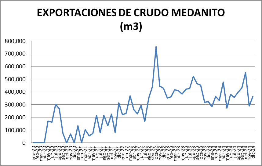 En el siguiente gráfico vemos la evolución de la exportación del crudo Medanito.