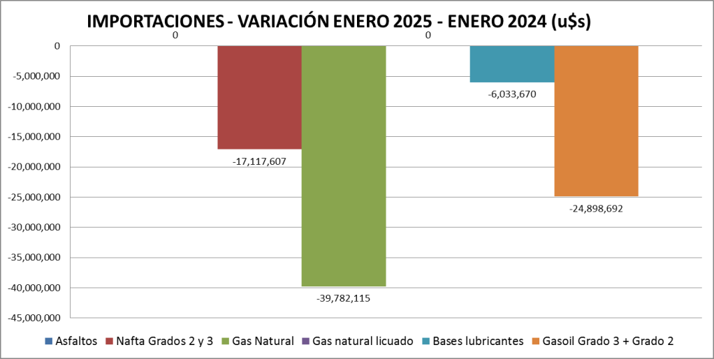 La principal causa de la caída de importaciones respecto a 2023 está basada en gasoil, naftas y gas natural por caño que, sumadas, significaron 82 millones de dólares menos.