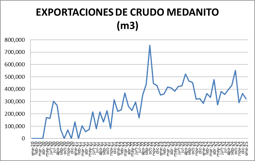 En el siguiente gráfico vemos la evolución de la exportación del crudo Medanito.