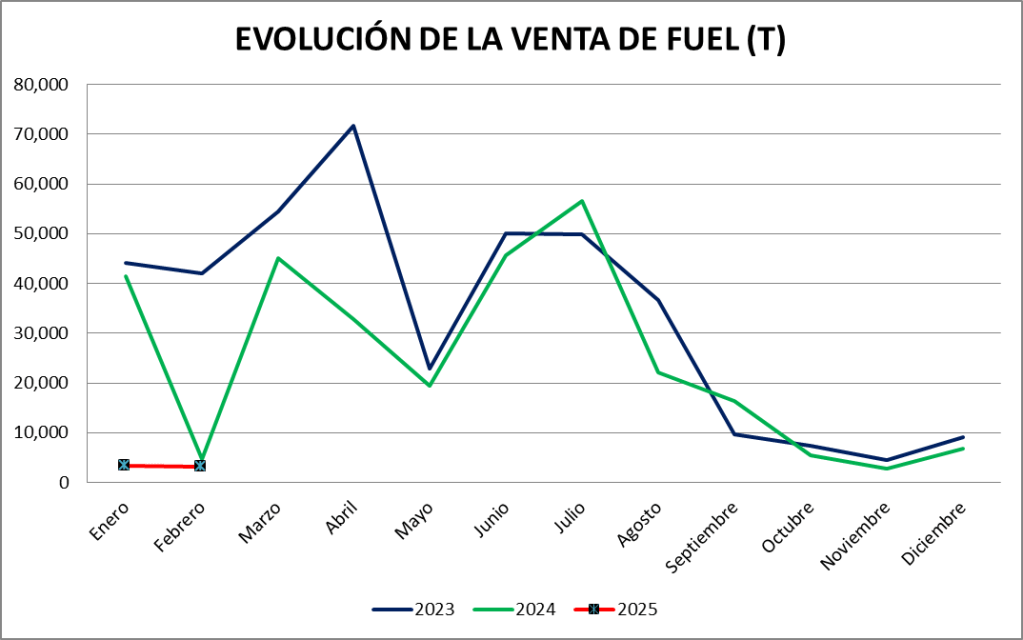Las ventas de fuel oil registradas en enero son de 3.263 toneladas, cifra casi idéntica a la vendida en el año 2024.