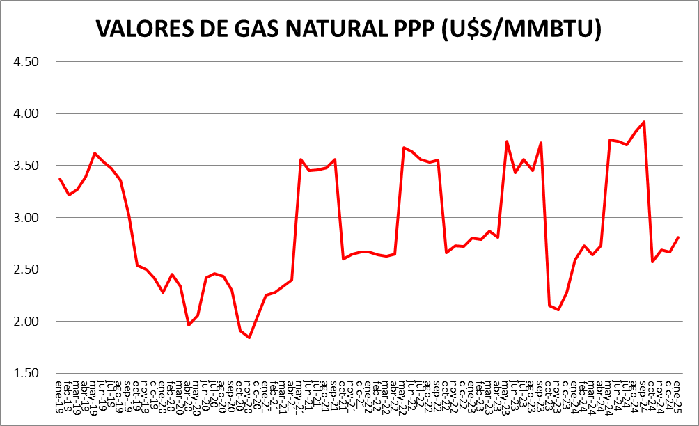 Los precios evolucionaron así: La Secretaría de Energía no publicó precios de enero de 2025 para este sector.