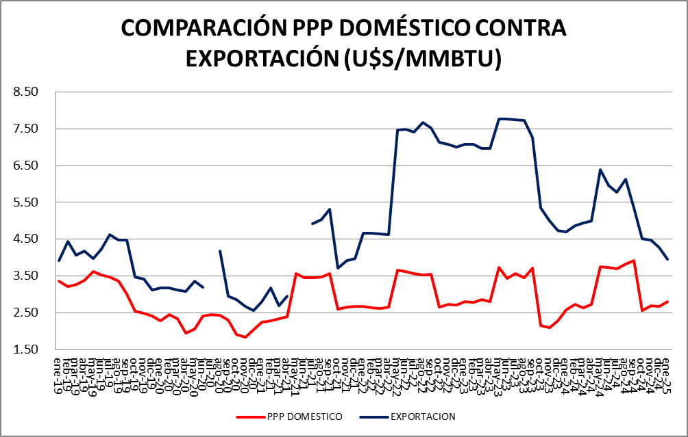 En cuanto a los volúmenes, se comercializaron 41,6 MMm3/día, valor un 0,98% menor al de diciembre de 2024 y un 14,0% mayor que el de hace un año atrás.