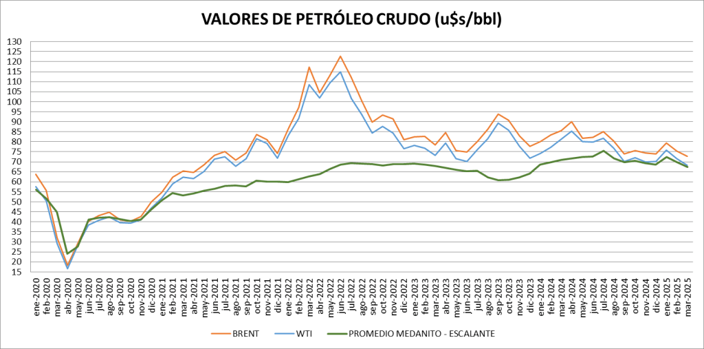 El promedio nacional de marzo 2025 es de 67,34 dólares por barril.