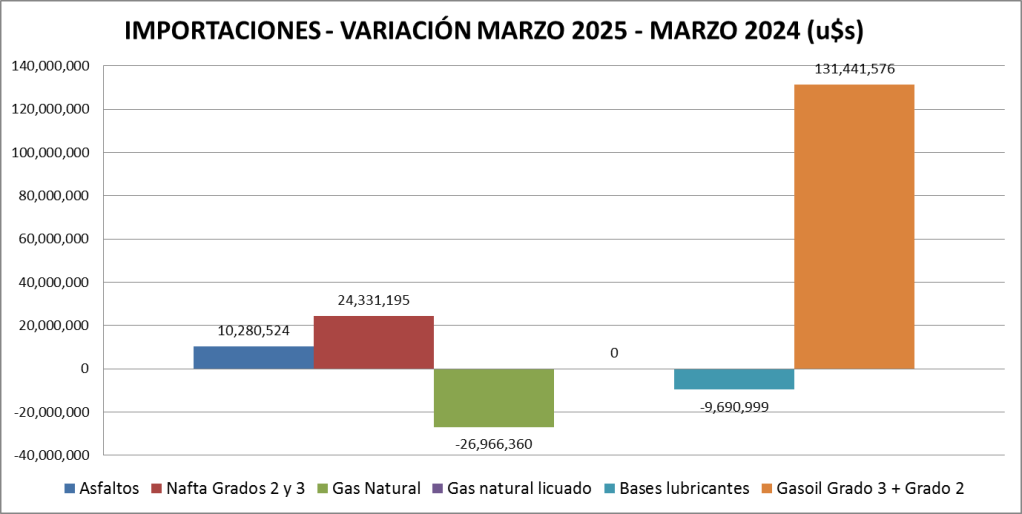 La principal causa del aumento de importaciones respecto a 2024 está basada en gasoil y naftas que, sumadas, significaron 155,7 millones de dólares más.