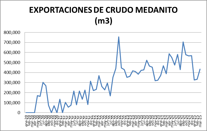 En el siguiente gráfico vemos la evolución de la exportación del crudo Medanito.
