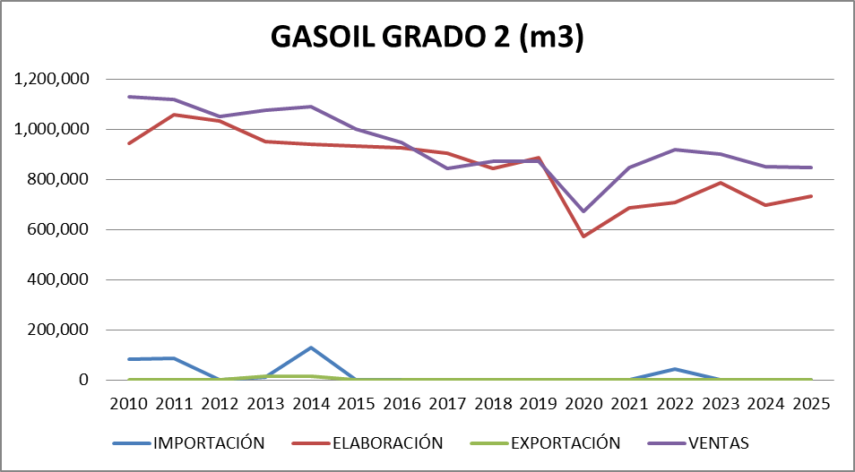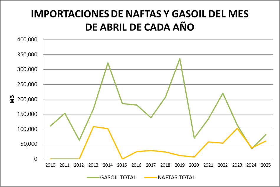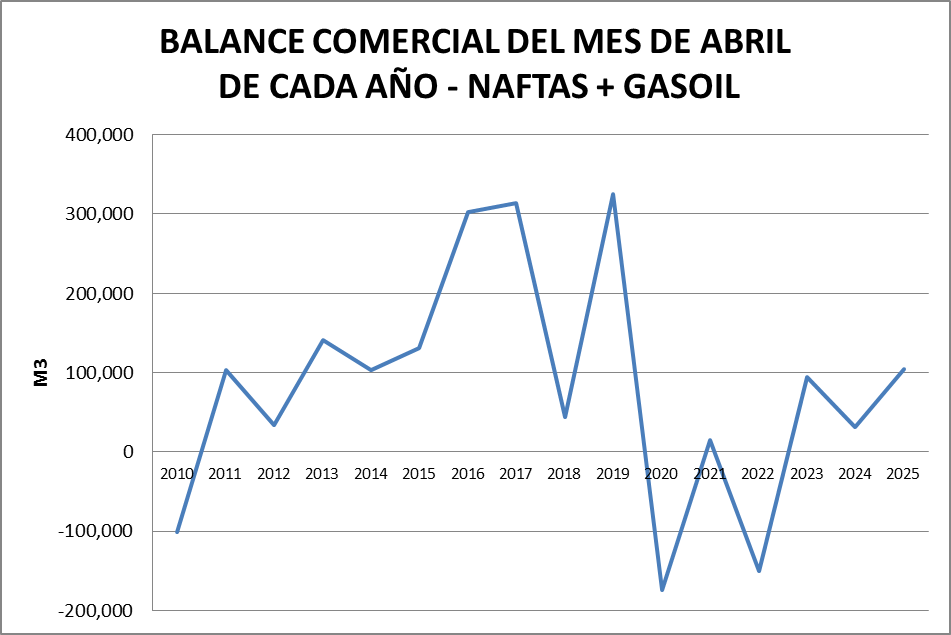 En abril de 2025 sigue el negativo de gasoil grado 2 aunque se verificó una compensación con el balance de gasoil grado 3. El balance general fue positivo. No se verifican problemas de abastecimiento en el mercado.