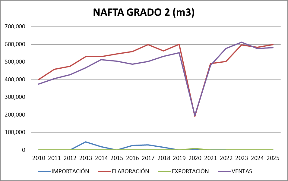 | AÑO | Gasoil Grado 2 (Común) | Gasoil Grado 3 (Ultra) | Nafta Grado 2 (Súper) | Nafta Grado 3 (Ultra) | TOTAL |