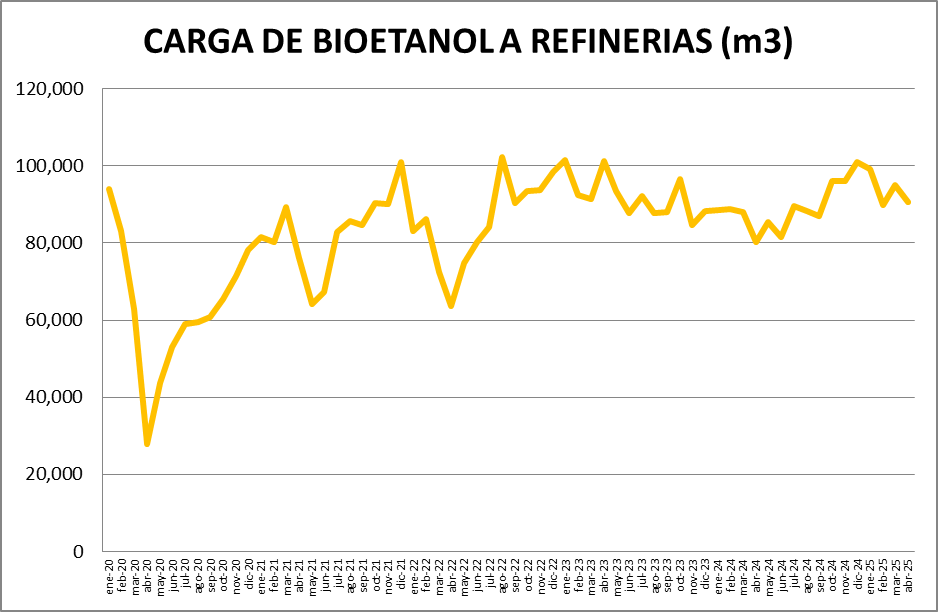 En cuanto al bioetanol, se utilizó en abril de 2025, un 4,67% menos que en marzo de 2025.