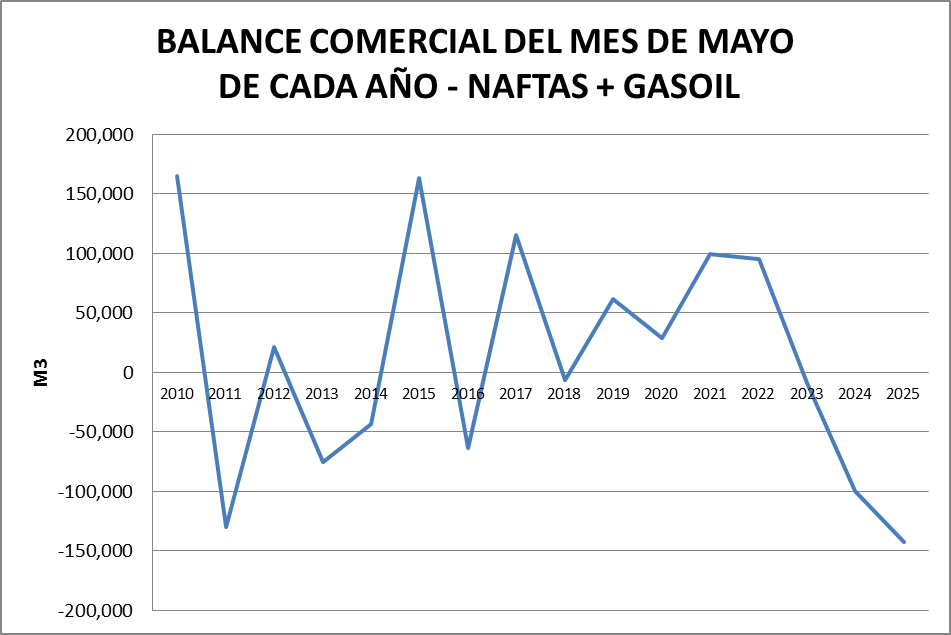 Para el análisis que presentamos a continuación, que tiene como objetivo realizar un Balance Comercial, tomaremos los volúmenes de nafta grado 2, nafta grado 3, gasoil grado 2 y gasoil grado 3, correspondientes al mes de mayo de cada año (último dato disponible).