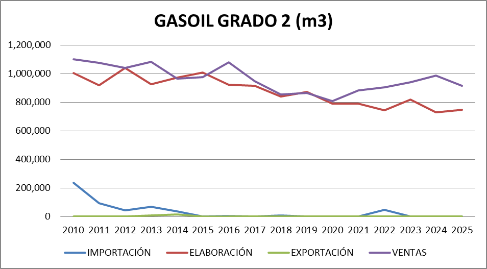 | Gasoil Grado 2 (Común) | 552,624 | 593,819 | -41,195 |