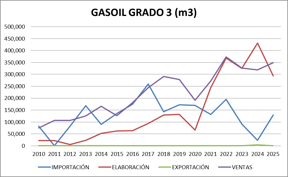 | Gasoil Grado 3 (Ultra) | 344,132 | 469,945 | -125,814 |