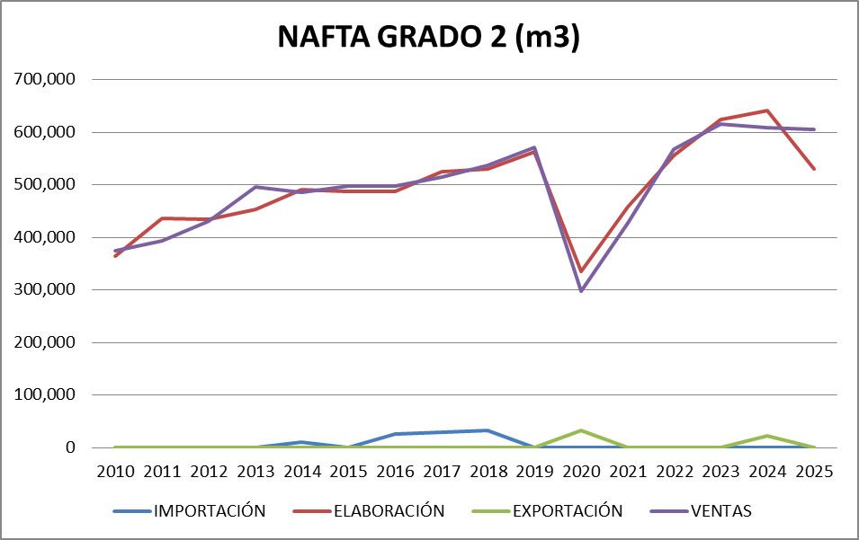 | Nafta Grado 2 (Súper) | 367,123 | 405,671 | -38,548 |