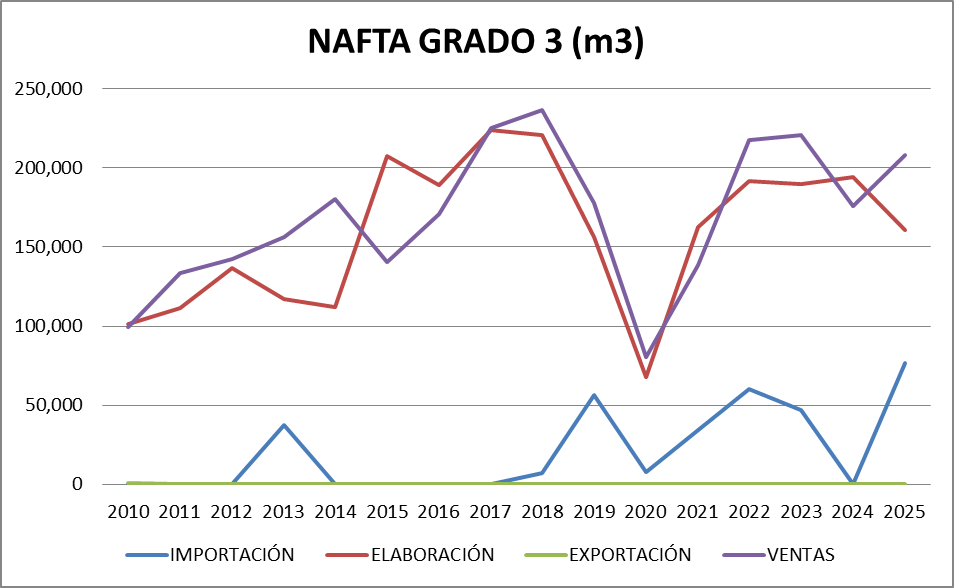 | Nafta Grado 3 (Ultra) | 249,381 | 287,453 | -38,072 |