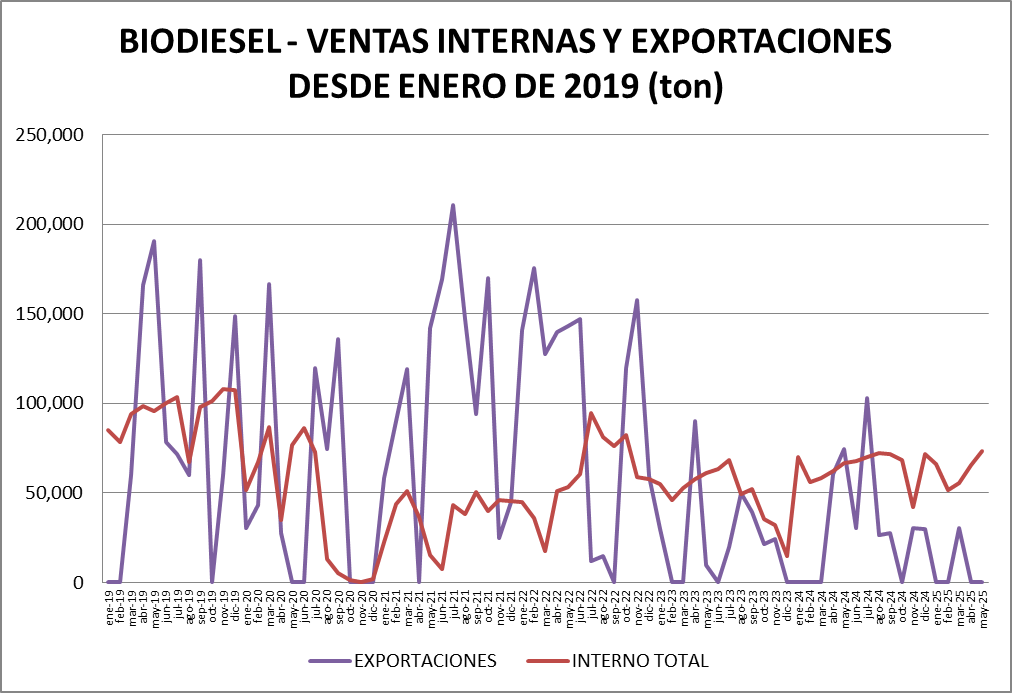 No se exportó biodiesel en mayo de 2025.