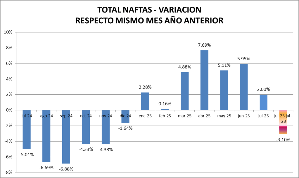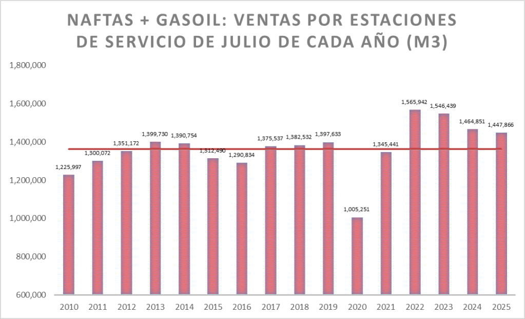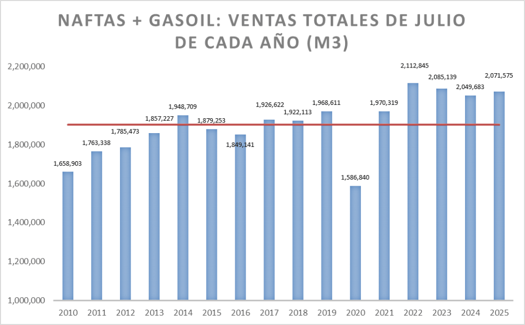 En el caso de las naftas, en julio de 2025, la venta no fue la mejor de la serie.