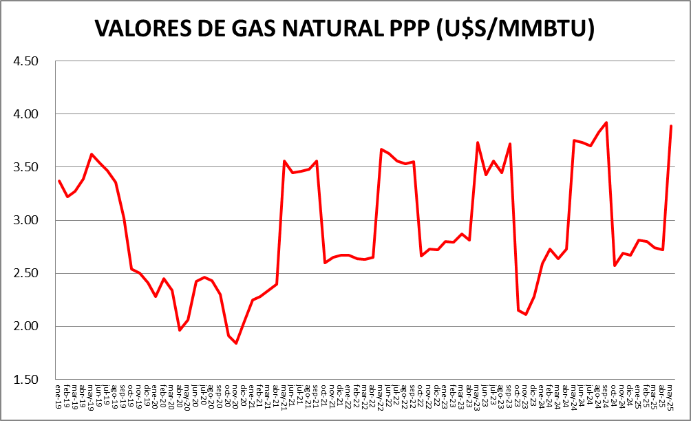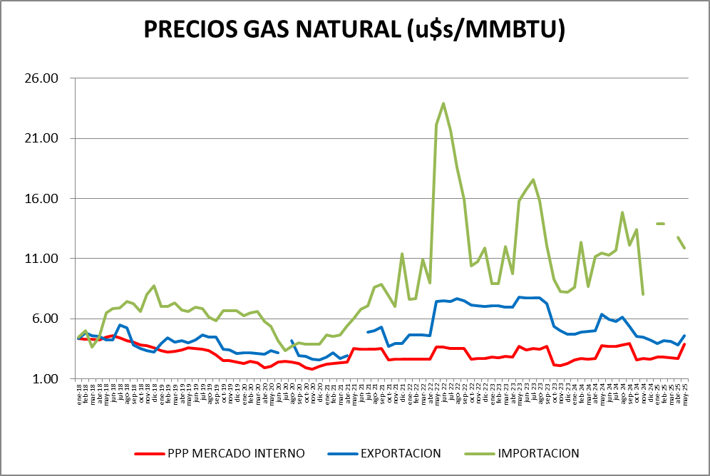 Los precios evolucionaron así: La Secretaría de Energía no publicó precios de mayo de 2025 para este sector.