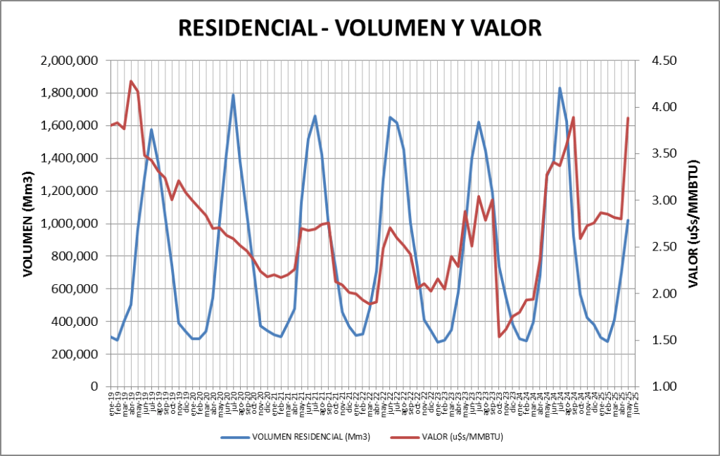 El sector Residencial es el que consume más cantidad de gas natural, en invierno, con una muy clara estacionalidad.