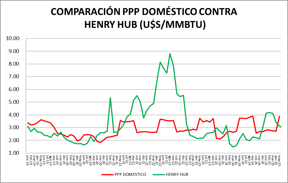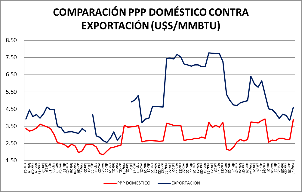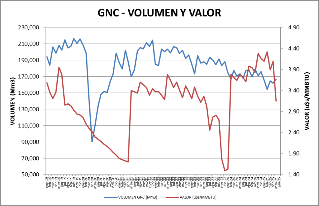 En cuanto al volumen, se consumieron 28,12 MMm3/día en promedio 132,4% más que el mes anterior y 6,0% inferior a mayo de 2024.