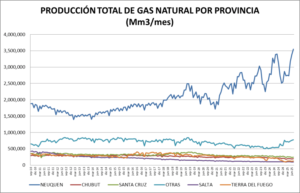 En el caso del gas natural la cuenca preponderante es la neuquina: