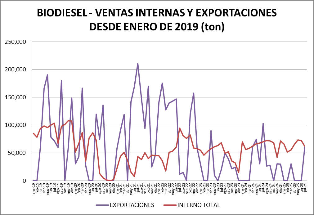 Se exportaron 60.000 t. de biodiesel en julio de 2025.