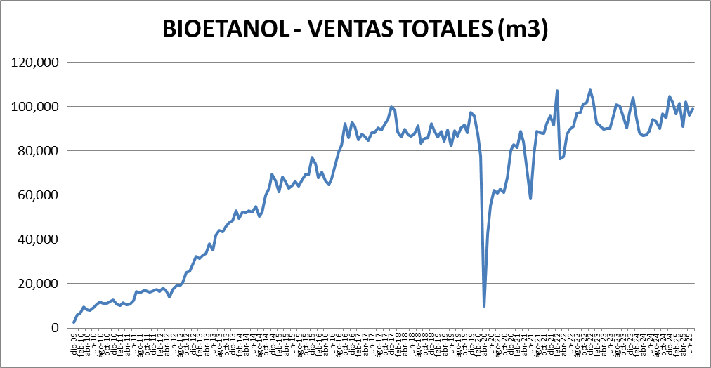 El contenido de bioetanol en naftas fue del 11,77% en julio de 2025, en el entorno normal de funcionamiento del sistema.
