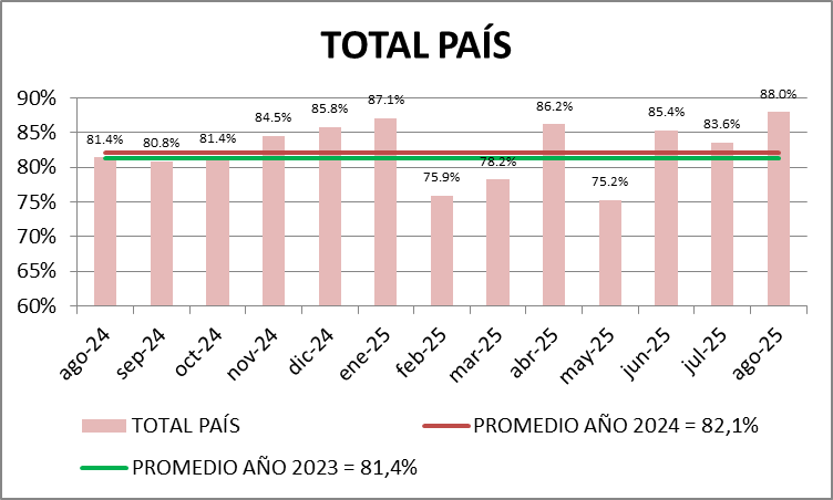 Con respecto a agosto del año 2024 se cargó 7,78% más.