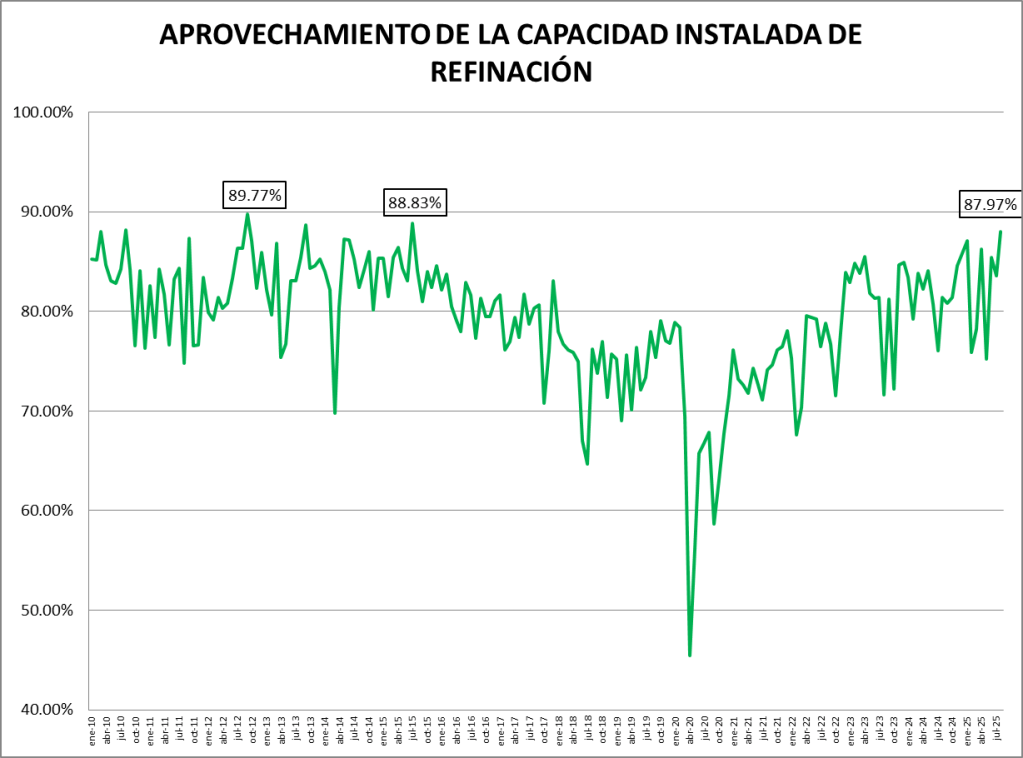 APROVECHAMIENTO DE LA CAPACIDAD INSTALADA DE REFINACIÓN