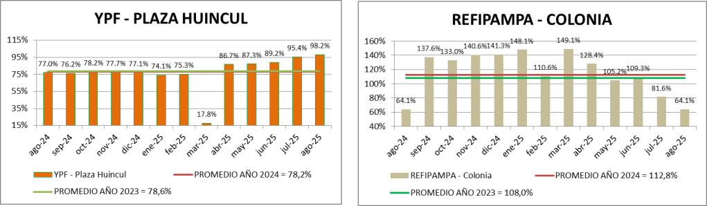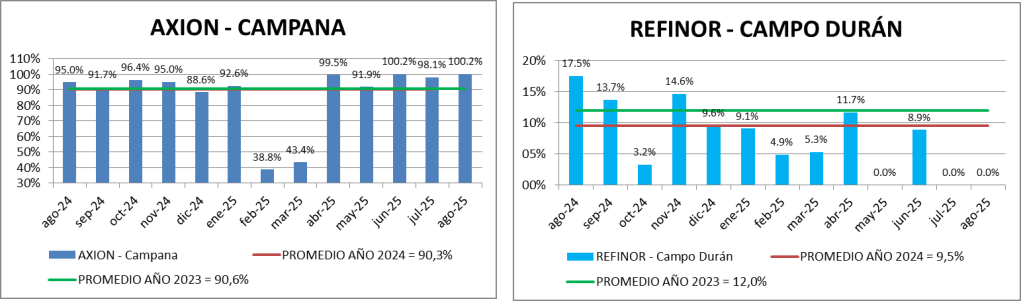 REFINOR vuelve a no tener actividad en agosto y a eso se suma una operación restringida en REFIPAMPA (64% de aprovechamiento de capacidad).