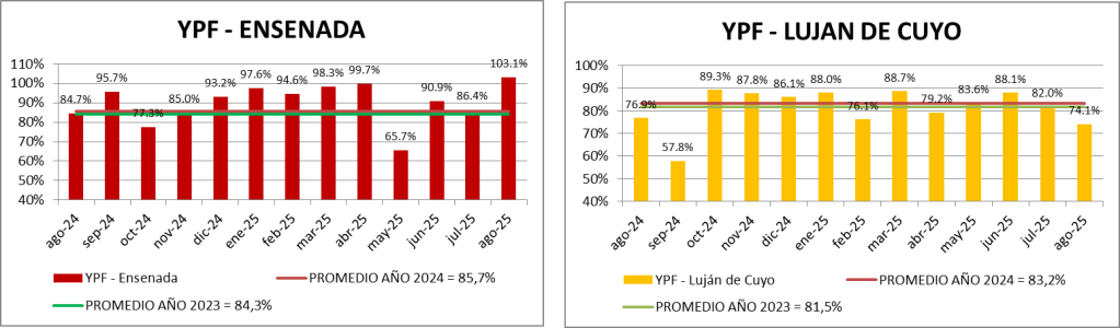 La refinería de YPF en Ensenada es la responsable de este resultado ya que procesó a un 103% de su capacidad teórica.