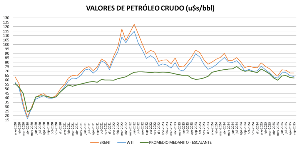 La brecha con el WTI fue, en septiembre de 2025, de 2,57%.