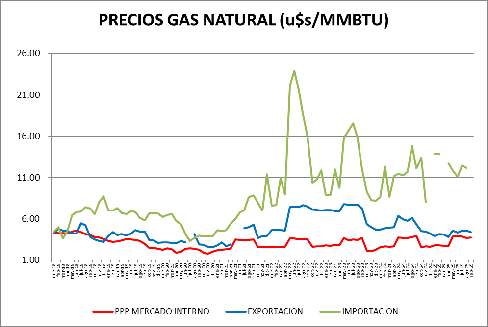 Los precios evolucionaron así: La Secretaría de Energía no publicó precios de septiembre de 2025 para este sector.
