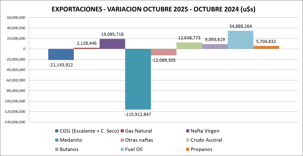 | COMERCIO EXTERIOR DE HIDROCARBUROS (U$S) | oct-25 | VARIACIÓN RESPECTO AL MES ANTERIOR | VARIACIÓN RESPECTO AL MISMO MES DEL AÑO ANTERIOR |