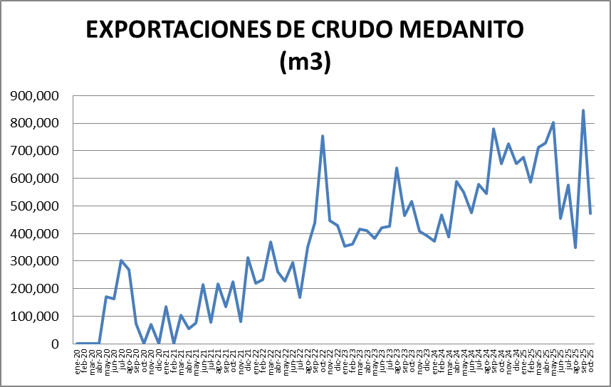 En el siguiente gráfico vemos la evolución de la exportación del crudo Medanito.