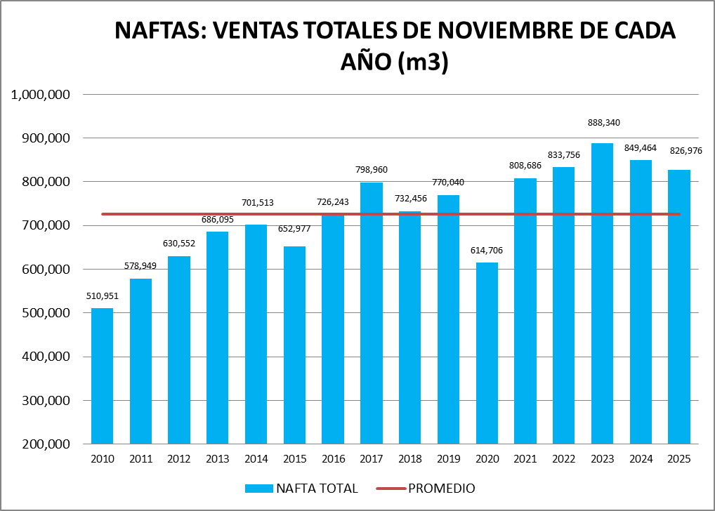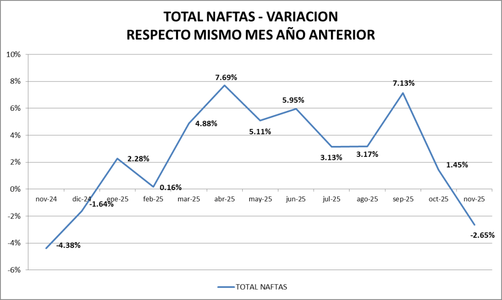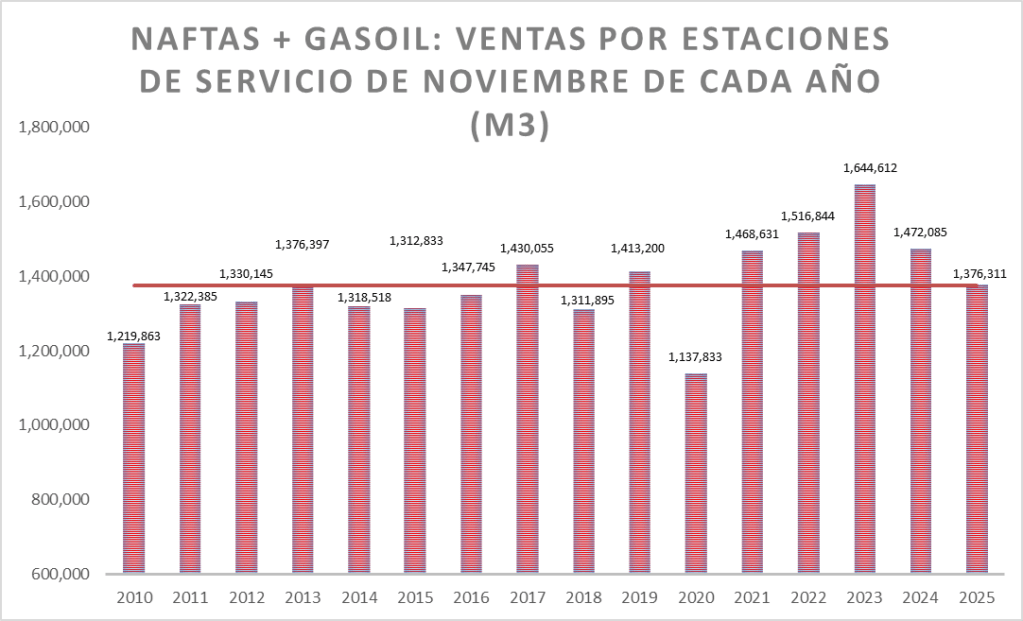 En el caso de las naftas, en noviembre de 2025, la venta no fue la mejor de la serie.
