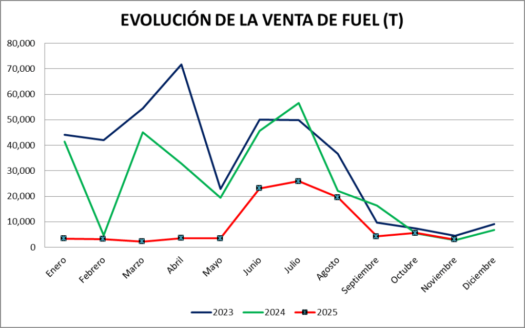 Las ventas de fuel oil registradas en noviembre son de 3.070 toneladas, cifra similar a la vendida en el año 2024.