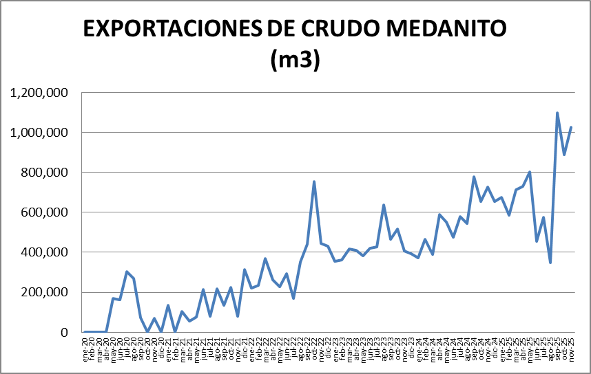 En el siguiente gráfico vemos la evolución de la exportación del crudo Medanito.