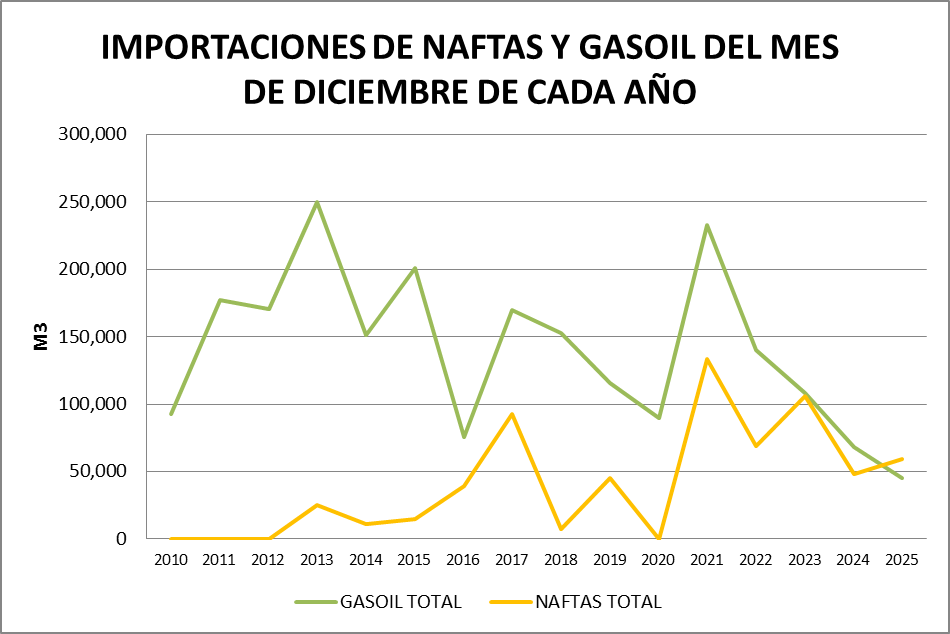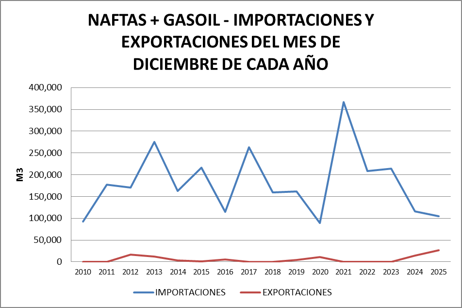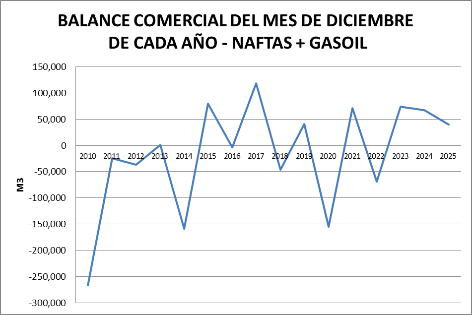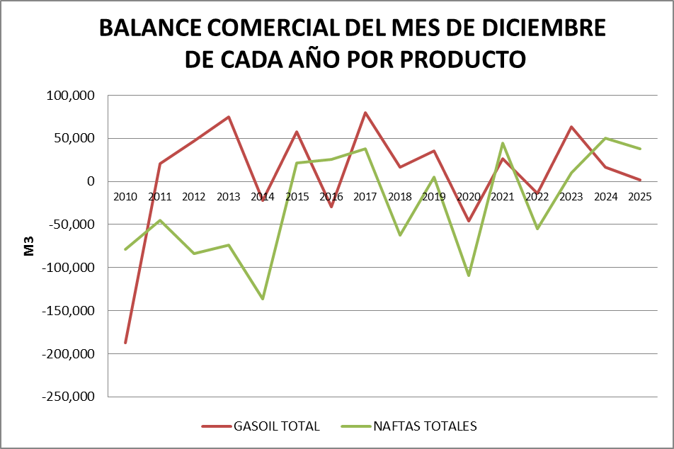 Para el análisis que presentamos a continuación, que tiene como objetivo realizar un Balance Comercial, tomaremos los volúmenes de nafta grado 2, nafta grado 3, gasoil grado 2 y gasoil grado 3, correspondientes al mes de diciembre de cada año (último dato disponible).