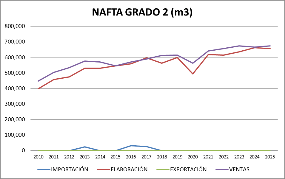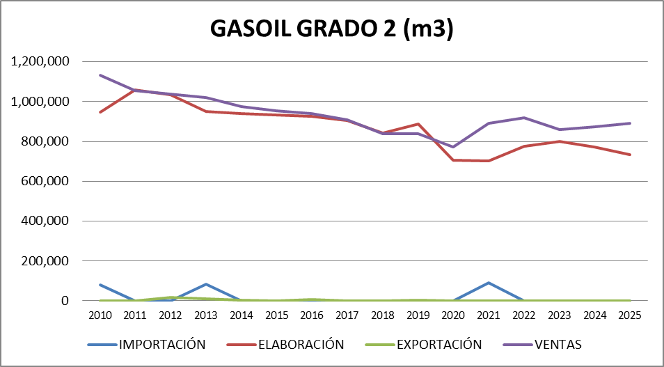 | AÑO | Gasoil Grado 2 (Común) | Gasoil Grado 3 (Ultra) | Nafta Grado 2 (Súper) | Nafta Grado 3 (Ultra) | TOTAL |