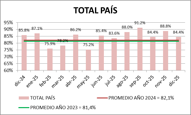 | TOTAL PAÍS | 2,638,025 | 84.4% | -4.97% | -1.64% |