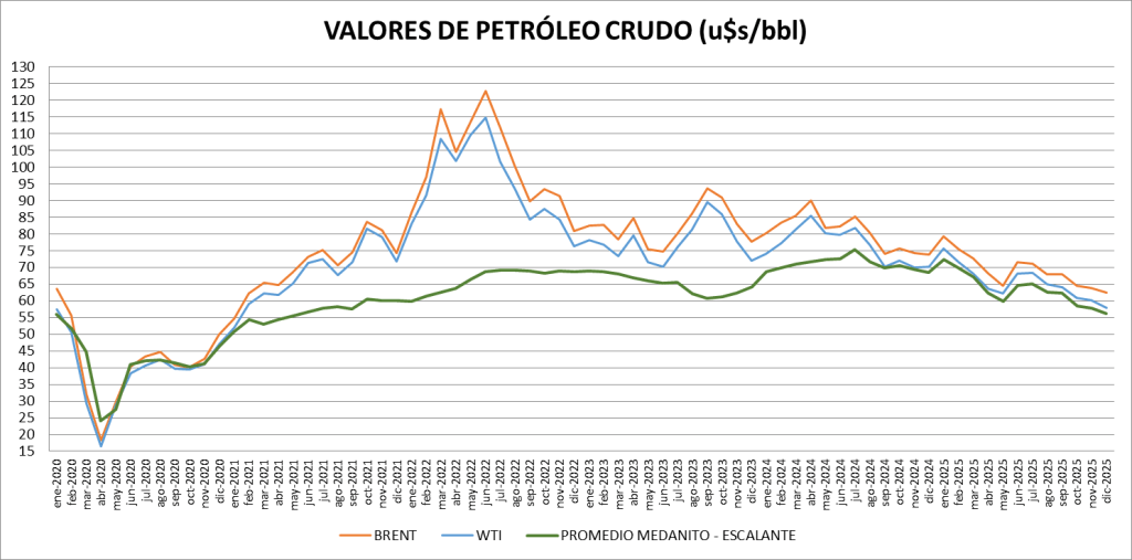 La brecha con el WTI fue, en diciembre de 2025, de 3,12%.