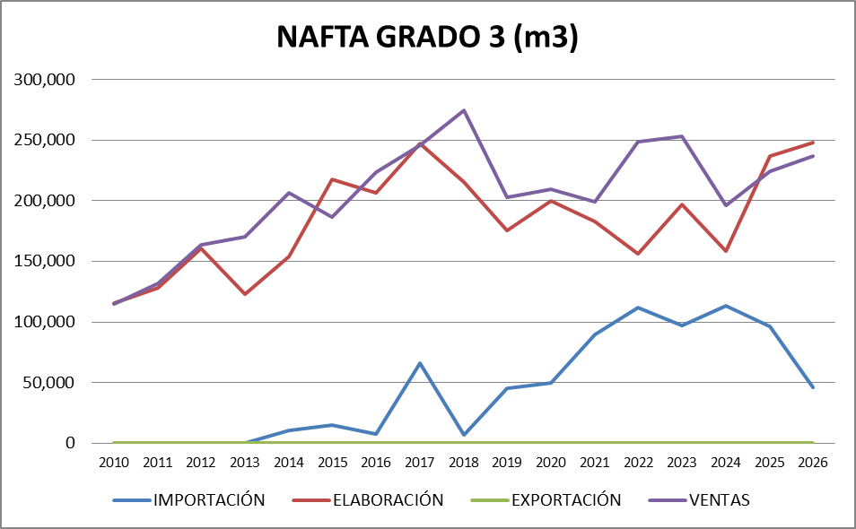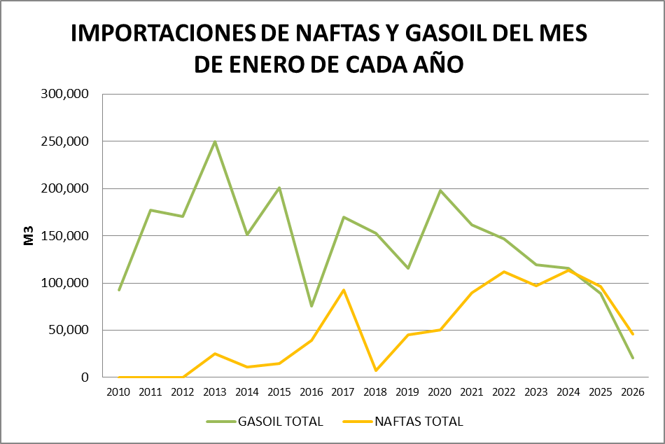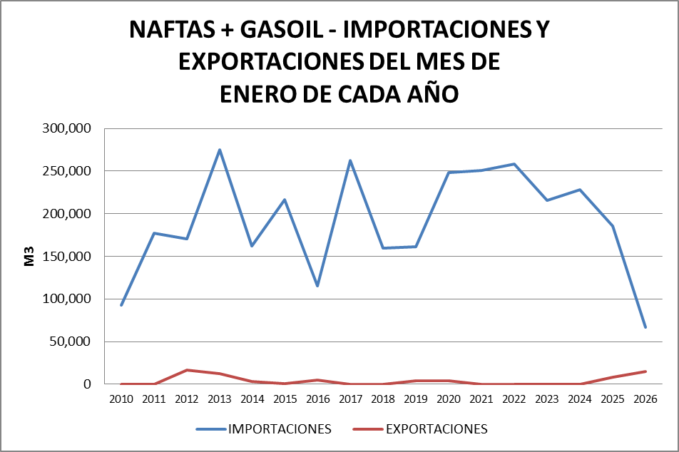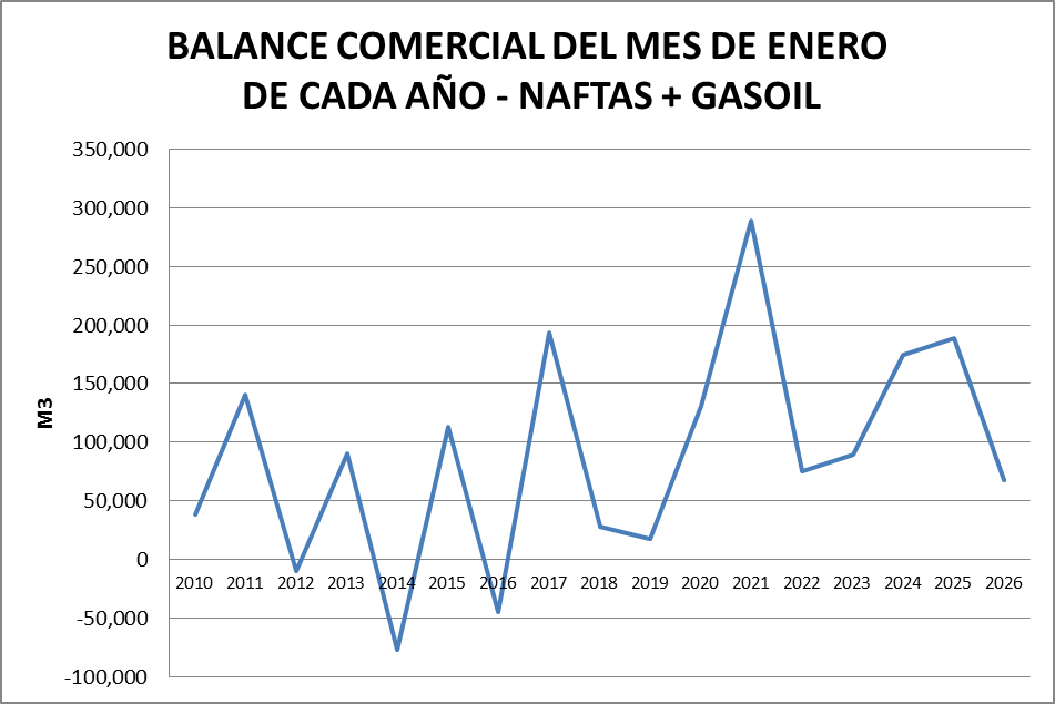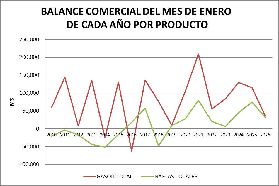 Para el análisis que presentamos a continuación, que tiene como objetivo realizar un Balance Comercial, tomaremos los volúmenes de nafta grado 2, nafta grado 3, gasoil grado 2 y gasoil grado 3, correspondientes al mes de enero de cada año (último dato disponible).