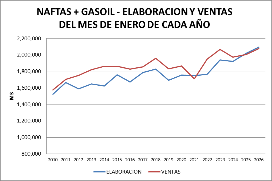 Históricamente las ventas superan a la elaboración y ese déficit es cubierto por importaciones. En enero de 2026 las ventas y la elaboración se muestran de la siguiente forma: