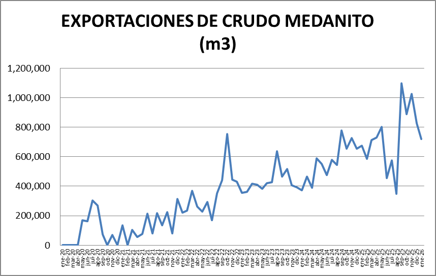 En el siguiente gráfico vemos la evolución de la exportación del crudo Medanito.