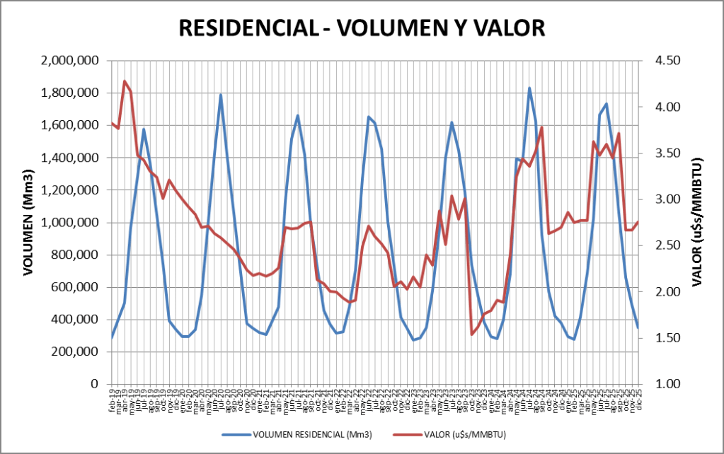 El sector Residencial es el que consume más cantidad de gas natural, en invierno, con una muy clara estacionalidad.