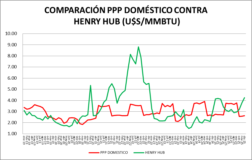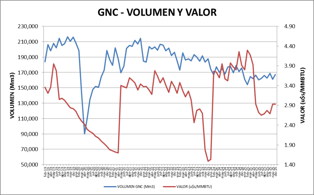 El GNC sigue a continuación y vemos que el valor se mantiene estable en diciembre de 2025 respecto de noviembre.